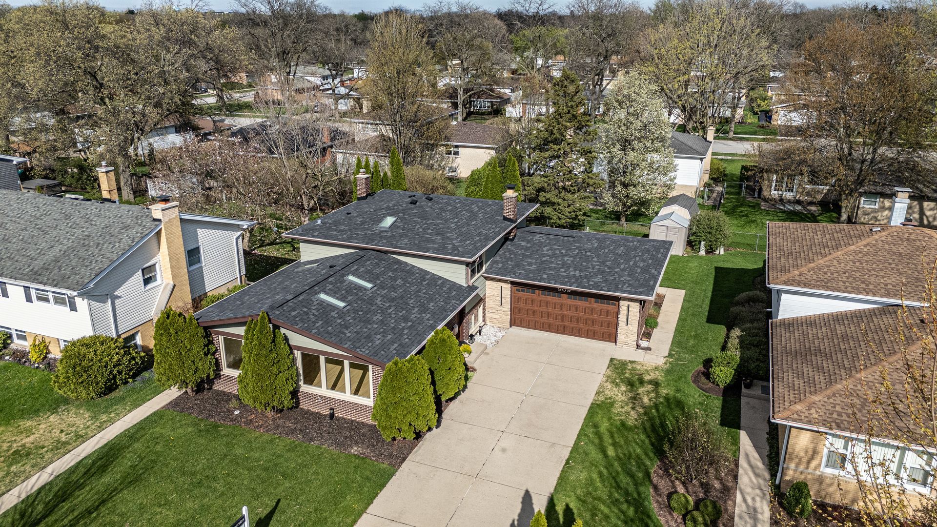 Absolutely stunning, newly remodeled home on a beautiful street in the heart of Mount Prospect. This exceptional residence offers timeless elegance, refined comfort, and a prime location within one of Mount Prospect's most desirable neighborhoods. This beautifully maintained, permit-approved 3-bedroom, 2-bath home is truly move-in ready and showcases a seamless blend of classic charm and modern sophistication. Step into a light-filled interior featuring a show-stopping kitchen with custom cabinetry, sleek countertops, premium appliances, and designer lighting, perfect for both everyday living and entertaining. Spacious bedrooms provide comfort and functionality, while the newly remodeled bathroom offers a spa-like feel with refined finishes. Extensive upgrades include a new roof and skylights, beautifully refinished hardwood floors, wide plank engineered flooring on the second level, and new laminate flooring in the lower-level family room. Large-format tile, fresh paint, newer windows, new interior and select exterior doors, and updated lighting complete the home's elevated look. A striking white oak staircase with iron spindles and custom underlighting adds a standout architectural feature. Additional highlights include a cozy gas fireplace, custom built-in credenza with wine cooler, and a thoughtfully designed floor plan with seamless flow throughout. The heated, extra-wide garage with custom cabinetry, along with an extended driveway, offers both convenience and functionality. Enjoy the private outdoor patio, perfect for relaxing or entertaining. Ideally located near Woodfield Mall, O'Hare, major highways, shopping, dining, and award-winning Prospect High School. Truly turnkey and ready to impress.